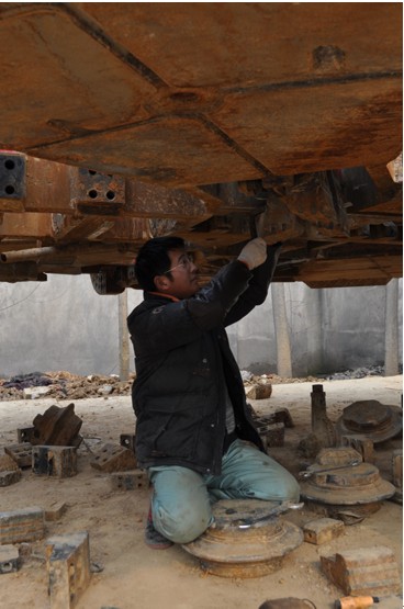在地下1.4公里的掘進(jìn)路程,讓盾構(gòu)機(jī)從開始的煥然一新到現(xiàn)在渾身都是泥土和銹跡,充滿了“奮斗”的痕跡,如同經(jīng)歷了一場(chǎng)大型戰(zhàn)役般,現(xiàn)在的盾構(gòu)機(jī)最需要的是休養(yǎng)和調(diào)整。據(jù)負(fù)責(zé)人李強(qiáng)介紹,盡管配備專門的維修保養(yǎng)人員,但在盾構(gòu)機(jī)掘進(jìn)過程中,仍會(huì)出現(xiàn)正常的使用損耗,如刀盤的泡沫孔被淤泥堵塞等,只能等到盾構(gòu)機(jī)完全拆卸后才能處理?,F(xiàn)在他們的主要工作就是為盾構(gòu)機(jī)去泥、除渣、除銹、刷油,維修損壞部件,進(jìn)行例行保養(yǎng)。