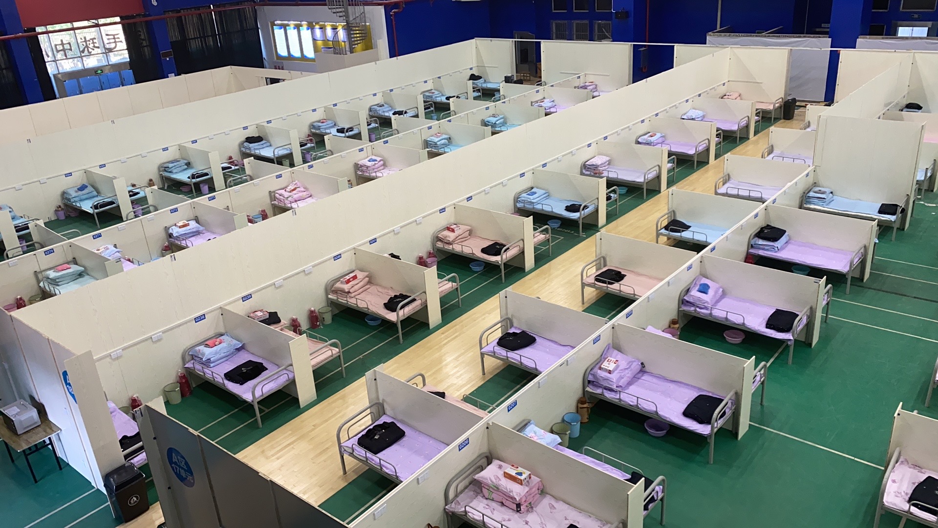 ? ? ? ?經(jīng)過(guò)三天的日夜奮戰(zhàn),目前1160張床位隔離設(shè)施已全部完成,場(chǎng)館內(nèi)水電設(shè)施全部正常投入使用,移動(dòng)衛(wèi)生間、洗手池、熱水器、飲水機(jī)、空調(diào)、電視、微波爐等生活配套設(shè)施也已全部安裝完畢,具備移交條件。為了讓輕癥患者生活更加便利,每個(gè)床位都配備了洗臉盆、開(kāi)水瓶、牙膏、牙刷、大衣等生活用品。