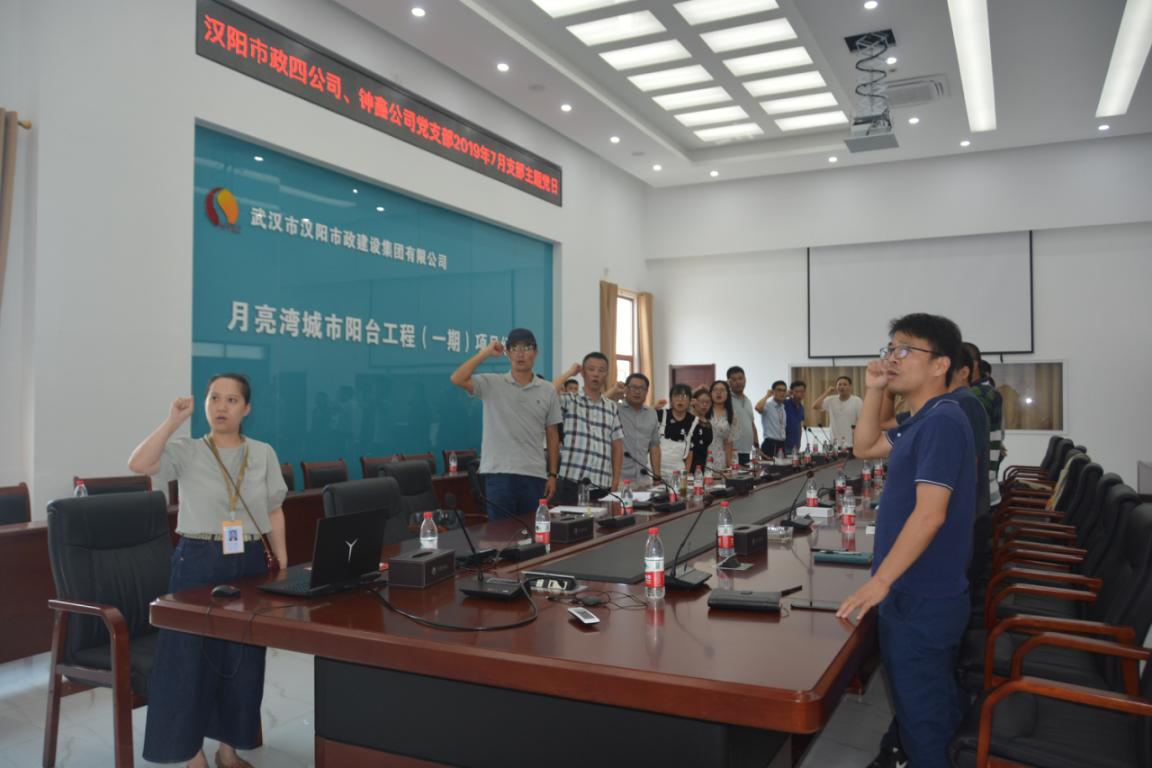 ? ? ? 活動(dòng)伊始,盧永紅同志通報(bào)了黨員到會(huì)人數(shù)以及黨費(fèi)繳納情況。緊接著,全體黨員起立合唱國歌,洪亮的國歌聲響徹了會(huì)議室,黨員昂首挺胸、莊嚴(yán)肅穆。隨后在后勤黨小組組長劉艷新同志的帶領(lǐng)下,全體黨員重溫了入黨誓詞,現(xiàn)場施工黨小組組長張?jiān)仆緞t帶領(lǐng)全體黨員重溫了《黨章》。
