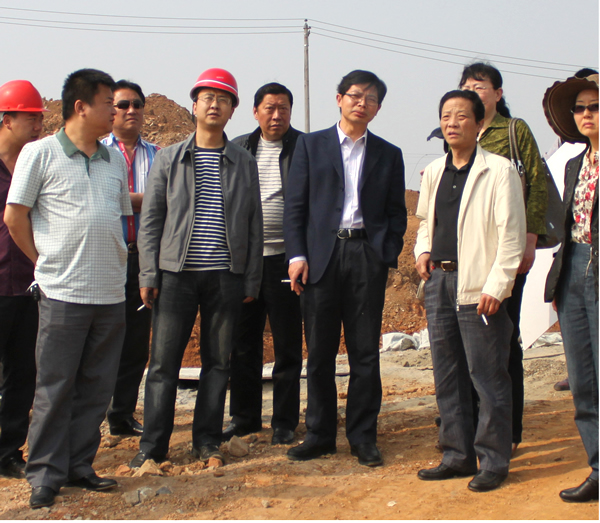 4月23日上午區(qū)長(zhǎng)一行在建設(shè)局熊局長(zhǎng)、漢陽(yáng)市政集團(tuán)公司胡總、天創(chuàng)公司總經(jīng)理李總等有關(guān)領(lǐng)導(dǎo)的陪同下視察龍陽(yáng)湖東路。(圖/文:李偉琪)