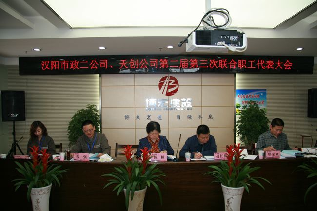 2015 年 4月 16日上午 9: 00,漢陽市政二公司、天創(chuàng)公司第二屆第三次聯(lián)合職工代表大會在閩東國際 26樓會議室召開。大會應(yīng)到職工代表 39人,實到 38人。漢陽市政建設(shè)集團公司領(lǐng)導(dǎo)出席了本次會議。