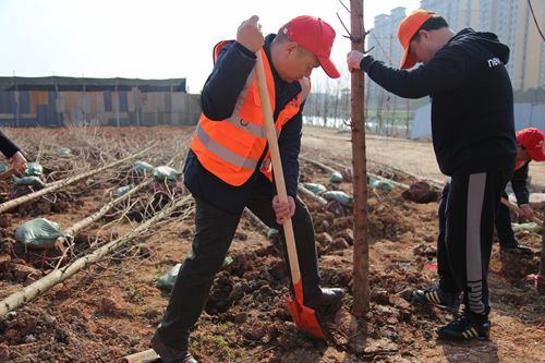 陽春三月,萬物復(fù)蘇。3月11日,漢陽市政集團(tuán)公司工會(huì)、團(tuán)委、志愿服務(wù)隊(duì)聯(lián)合質(zhì)檢部在四環(huán)線生態(tài)帶西段景觀工程項(xiàng)目處開展了以“十年樹木 百年樹人”為主題的義務(wù)植樹活動(dòng)。集團(tuán)公司副總經(jīng)理劉前進(jìn)、邢榮斌、王智高,總工程師荊武等班子領(lǐng)導(dǎo),分子公司負(fù)責(zé)人和公司職工共計(jì)170余人參與植樹。