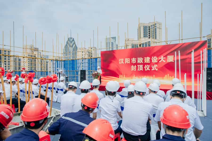? ? ? 2021年6月2日上午,漢陽(yáng)市政建設(shè)大廈封頂儀式在項(xiàng)目現(xiàn)場(chǎng)隆重舉行。漢陽(yáng)市政黨委書記、董事長(zhǎng)嚴(yán)悌文,總經(jīng)理虞志鵬,常務(wù)副總經(jīng)理王智高,黨委副書記陳穎等集團(tuán)領(lǐng)導(dǎo)班子及集團(tuán)各部門負(fù)責(zé)人,分子公司主要領(lǐng)導(dǎo)以及項(xiàng)目一線建設(shè)者共計(jì)50余人參加了本次封頂儀式。