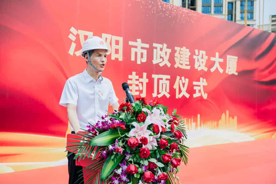 ? ? ? 漢陽(yáng)市政黨委書記、董事長(zhǎng)嚴(yán)悌文發(fā)表講話。嚴(yán)悌文代表漢陽(yáng)市政對(duì)堅(jiān)守一線的建設(shè)者們,對(duì)所有為漢陽(yáng)市政建設(shè)大廈付出辛勞和汗水的同事們表達(dá)感謝和敬意,對(duì)項(xiàng)目封頂儀式的順利舉行表示祝賀。他強(qiáng)調(diào),六十余載寒暑冬春,六十余載勵(lì)精圖治,從肩挑背扛到歸元老院,從泥濘小道到山遼海闊,漢陽(yáng)市政人一直胸懷夢(mèng)想,破浪前行。近年來(lái),企業(yè)規(guī)模日益壯大,企業(yè)實(shí)力不斷攀升,漢陽(yáng)市政建設(shè)大廈的建成將為公司的發(fā)展開(kāi)啟更為嶄新的一頁(yè)。