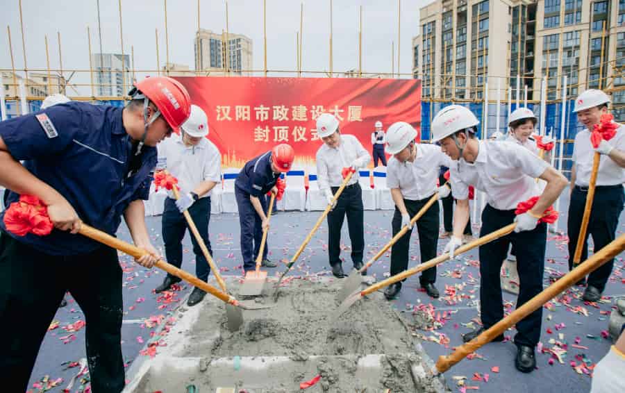 ? ? ? 10點(diǎn)38分,嚴(yán)悌文等與會(huì)領(lǐng)導(dǎo)參與漢陽(yáng)市政建設(shè)大廈項(xiàng)目最后一方混凝土澆筑儀式,項(xiàng)目正式封頂!陣陣禮炮聲響起,標(biāo)志著漢陽(yáng)市政建設(shè)大廈完成一個(gè)重大節(jié)點(diǎn)任務(wù),順利進(jìn)入新的建設(shè)階段。