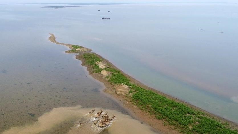 被野放的麋鹿在江西鄱陽湖濕地奔跑(來源:新華網(wǎng))