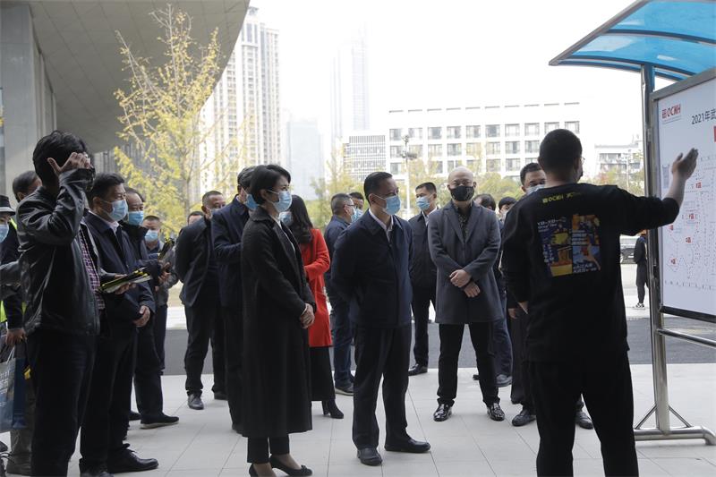 10月22日下午,武漢市委常委、副市長陳勁超,漢陽區(qū)委書記徐麗、區(qū)長范禮奎,市城建局局長、黨組書記夏平,區(qū)建設(shè)局局長胡紅勝等赴第六屆武漢設(shè)計雙年展主展館建設(shè)現(xiàn)場檢查指導(dǎo)搭建布展工作。漢陽市政黨委書記、董事長嚴悌文陪同調(diào)研。