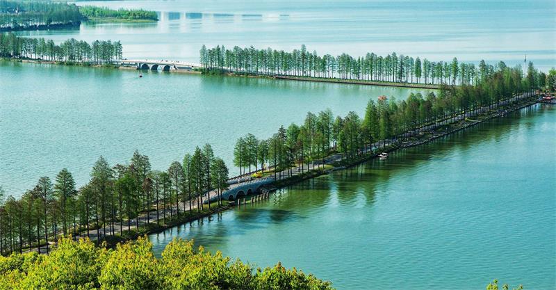 東湖綠道二期是國(guó)內(nèi)首條城區(qū)5A級(jí)旅游景區(qū)綠道,定位為世界級(jí)環(huán)湖綠道,致力于建設(shè)東湖城市生態(tài)綠心,傳承楚風(fēng)漢韻,打造世界級(jí)城中湖典范。工程位于武漢市東湖旅游風(fēng)景區(qū)內(nèi),環(huán)繞湯菱湖、后湖,串聯(lián)馬鞍山森林公園和白馬景區(qū)??傞L(zhǎng)約58公里。包含湖澤道等4條主題綠道,建設(shè)內(nèi)容包括:道路、景觀、橋梁、園林綠化、驛站及智慧綠道系統(tǒng)工程等。項(xiàng)目總投資約30.6億元,于2017年6月15日正式開(kāi)工建設(shè),2018年4月28日通過(guò)驗(yàn)收并投入使用。