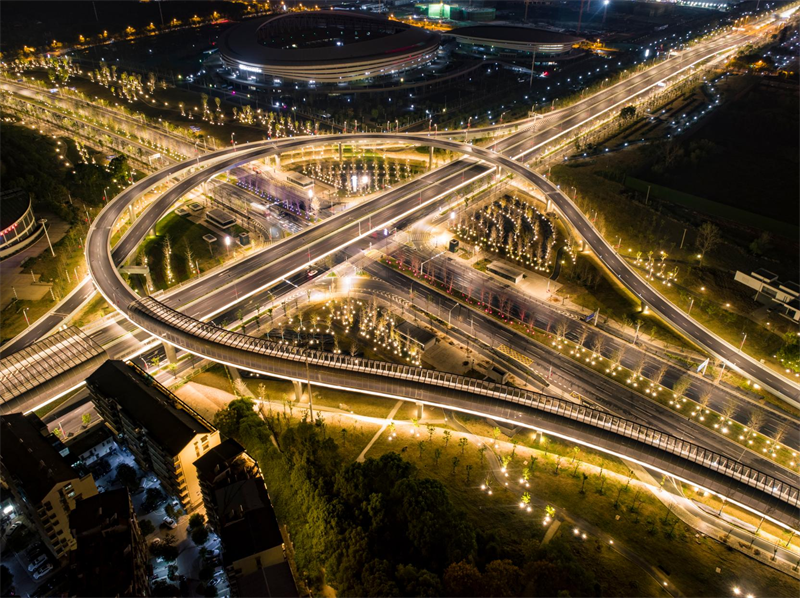東西湖區(qū)金山大道(九通路-機(jī)場(chǎng)路)改擴(kuò)建工程是東西湖區(qū)“五橫八縱一環(huán)”交通主干系統(tǒng)的重要一橫,同時(shí)是第七屆世界軍人運(yùn)動(dòng)會(huì)的重要交通保障線路。該工程西起九通路,東至機(jī)場(chǎng)路,全長(zhǎng)10.74km,標(biāo)準(zhǔn)路段紅線寬60m,包括道路、排水、橋梁、綠化、照明、交通工程等建設(shè)內(nèi)容,其中五環(huán)立交橋梁主線高架長(zhǎng)1180m,雙向6車道,最大跨徑60m。工程采用PPP模式實(shí)施,由漢陽(yáng)市政投資建設(shè)并運(yùn)營(yíng)維護(hù),于2018年2月28日開(kāi)工建設(shè),2019年12月27日通過(guò)竣工驗(yàn)收,總投資24.952億元。