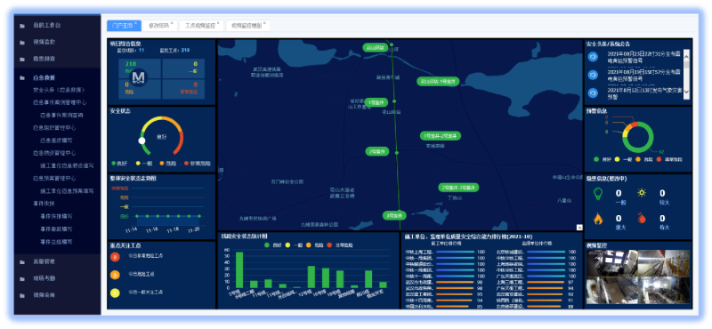 通過物聯(lián)網平臺將現(xiàn)場硬件數(shù)據(jù)實時同步到平臺中,展示現(xiàn)場環(huán)境PM2.5、噪聲、風速、溫度、濕度等狀態(tài),生成各項環(huán)境指標趨勢圖,自定義預警值,遠程控制設備。項目內部設有勞務班組人員實名制系統(tǒng),進退場人員實時更新,并對接武漢市實名制管理平臺,接受勞務人員進場及上下班打卡監(jiān)管。利用手機端安全管理系統(tǒng),由責任人對問題進行整改回復,記錄人對問題進行復核,使問題形成閉環(huán),自動生成整改通知單、罰款單、安全日志,提高一線工作人員工作效率。基于施工現(xiàn)場虛擬危險源特點讓體驗者可以走進真實的虛擬現(xiàn)實場景中,通過沉浸式和互動式體驗讓體驗者得到更深刻的安全意識教育,提升全員生產安全意識水平,具有科技應用水平高、培訓成效好、安裝部署快,使用成本低等顯著特點。與建設單位、監(jiān)理單位協(xié)同使用武漢地鐵質量安全管理平臺,實現(xiàn)施工現(xiàn)場視頻監(jiān)控、隱患排查、應急管理、質量管理及視頻會商一體化協(xié)同管理。