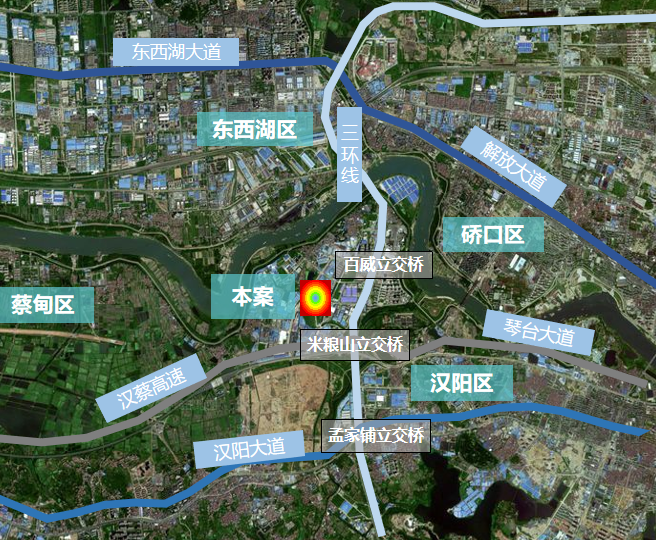 該地塊位于漢陽區(qū)黃金口工業(yè)園金磚路與黃金口大道交叉口東南角,北臨金磚路,西臨黃金口大道,南側(cè)和東側(cè)為待開發(fā)空地,雙干道交匯,交通便利,臨近三環(huán)線和漢蔡高速。