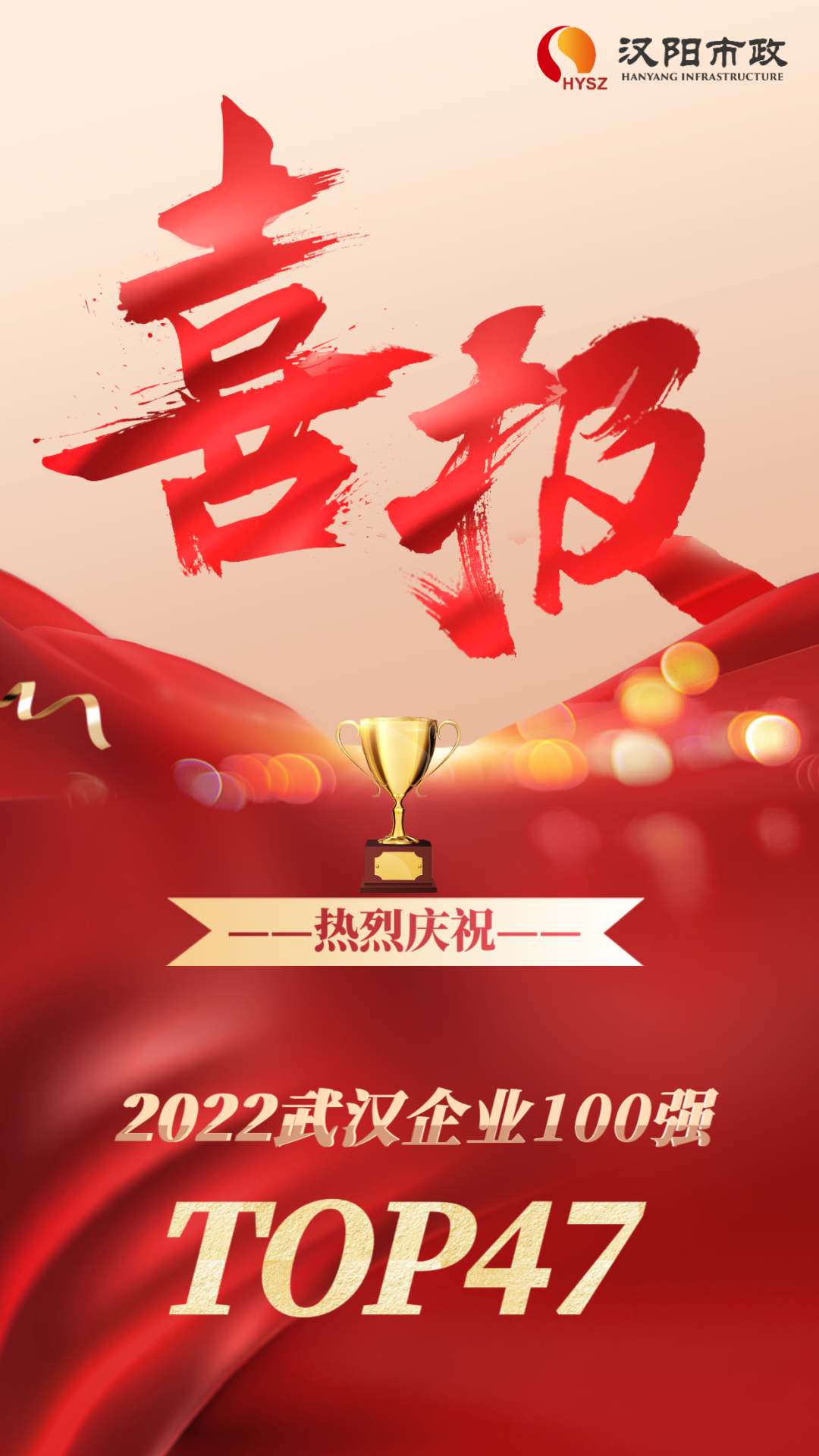 11月10日,《2022武漢企業(yè)100強、制造業(yè)企業(yè)100強、服務(wù)業(yè)企業(yè)100強分析報告》正式發(fā)布!漢陽市政榮登武漢企業(yè)100強榜單47位,相較上年再進(jìn)2位!