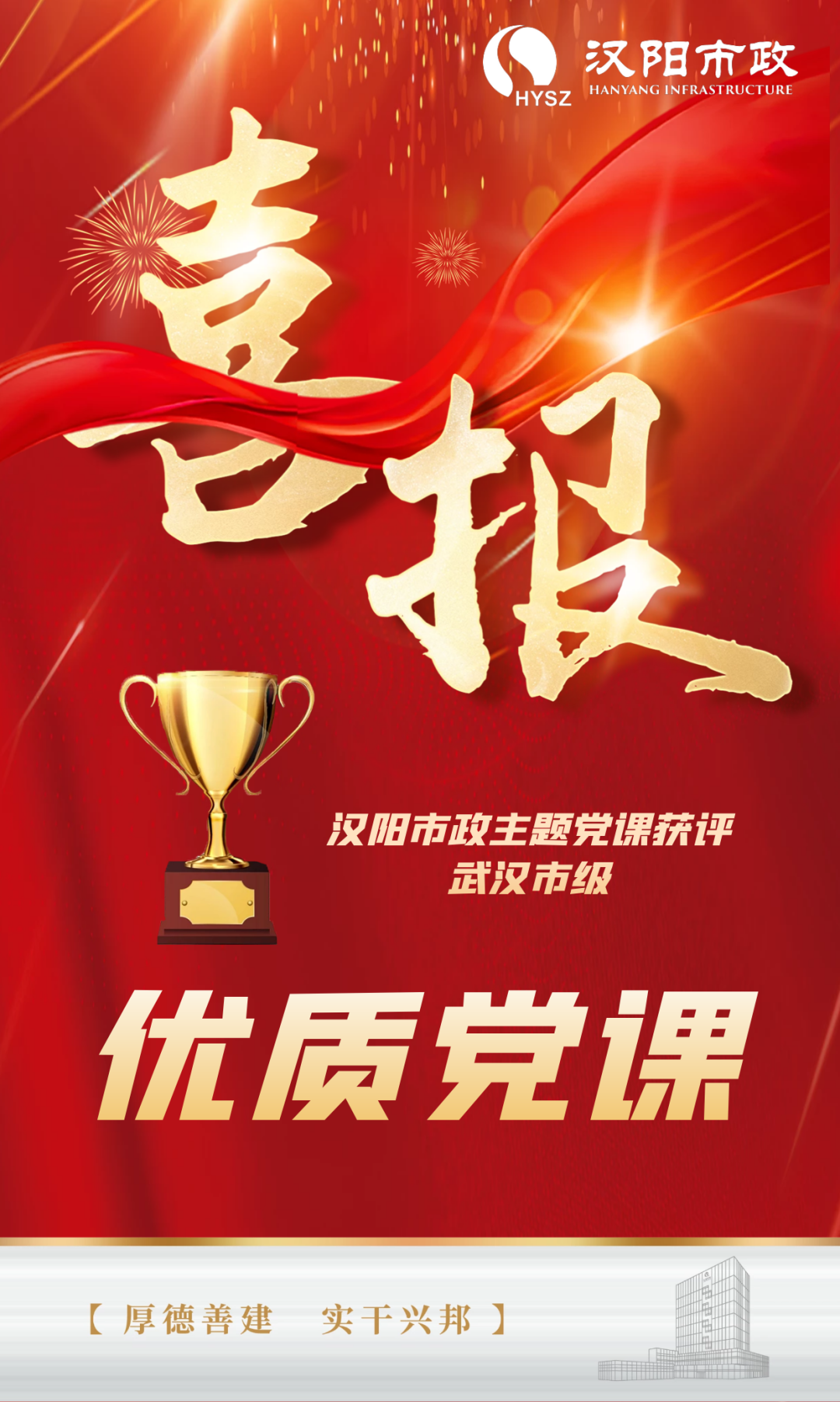 近日,武漢市委組織部發(fā)布了《關(guān)于2022年度全市“黨課開講啦”暨“主題黨課我來講”活動市級優(yōu)質(zhì)黨課的通報》,對50場市級優(yōu)質(zhì)黨課進(jìn)行表彰。漢陽市政選送的《賡續(xù)紅色血脈 扛起時代擔(dān)當(dāng)》在全市推薦申報的30200場黨課中脫穎而出,榮獲優(yōu)質(zhì)黨課優(yōu)秀獎!