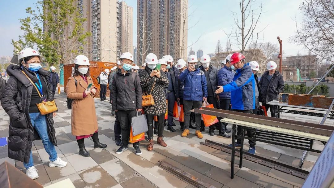 此次觀摩活動,武昌生態(tài)文化長廊項(xiàng)目通過現(xiàn)場實(shí)物和展板結(jié)合的形式,對項(xiàng)目采用的輕鋼龍骨框架、廢舊鐵軌利用、花崗巖跳色拼裝、彩色陶瓷顆粒透水路面、全套管全回轉(zhuǎn)鉆機(jī)樁基施工、鐵軌彎弧施工等精細(xì)化施工工藝進(jìn)行了展示。觀摩過程中,與會人員對現(xiàn)場實(shí)施的技術(shù)工藝表現(xiàn)出了極大的興趣,并和現(xiàn)場技術(shù)人員進(jìn)行了熱烈的交流討論。