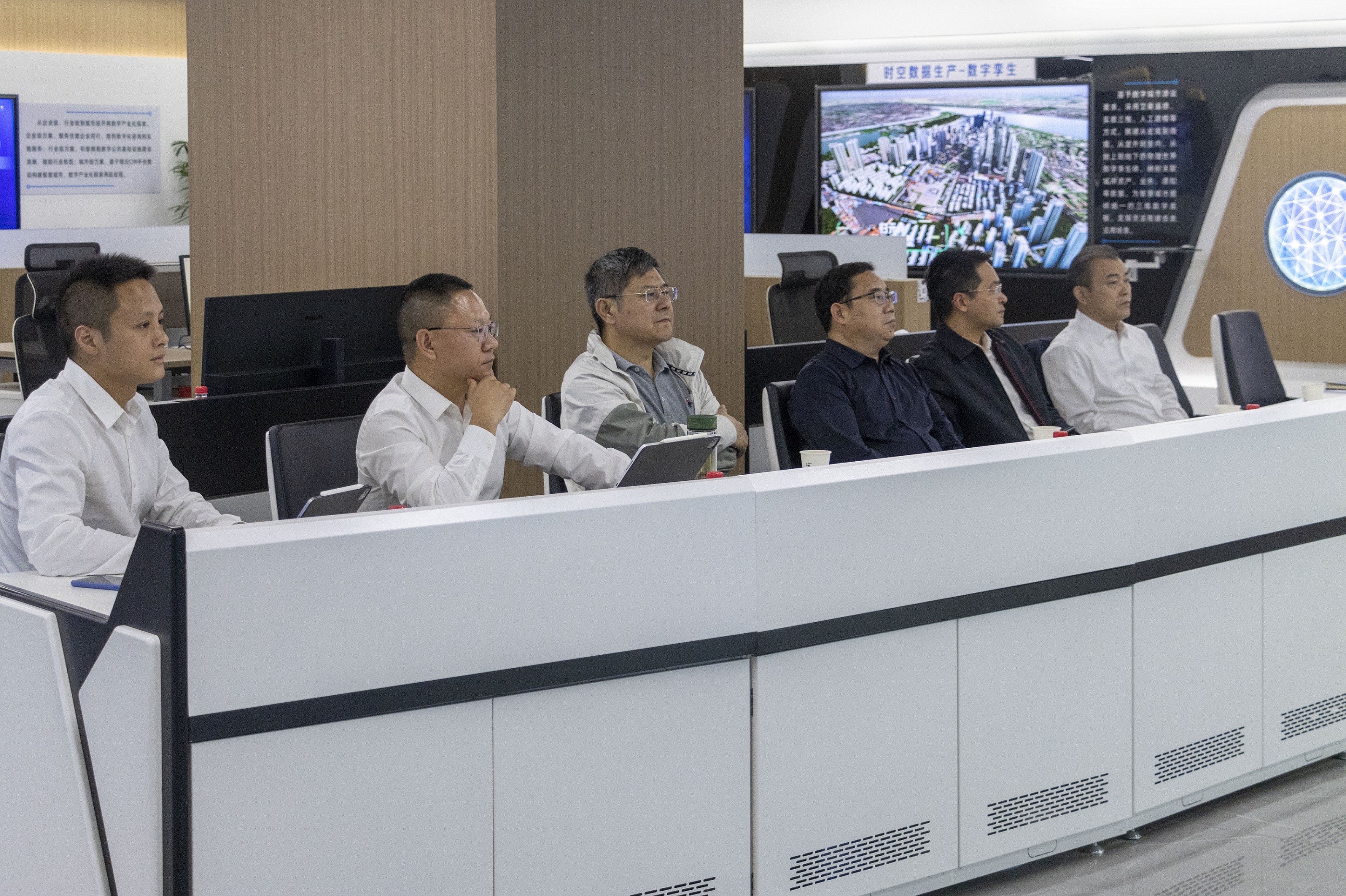 ? ? 在智能化展廳,一行人了解了匯科智創(chuàng)公司在智能建造、城市運維兩大領域的多項先進智能化設備,以及結(jié)合設備打造的裝配式一體化數(shù)字孿生沙盤,一端信號觸發(fā)兩端同步感應等技術。