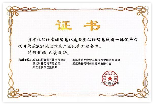 除本次榮膺“金標(biāo)杯”特等獎(jiǎng),該項(xiàng)目在此前已獲得2024中國(guó)地理信息產(chǎn)業(yè)優(yōu)秀工程金獎(jiǎng)、2023年武漢科技創(chuàng)新大賽月度分賽一等獎(jiǎng)等榮譽(yù),并入選住建部新城建展覽展示中心主展案例、2023年“中國(guó)建造”品牌創(chuàng)新實(shí)踐案例、中央網(wǎng)信辦2023年數(shù)字化綠色化協(xié)同轉(zhuǎn)型發(fā)展優(yōu)秀案例。